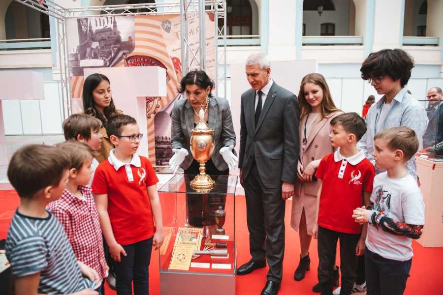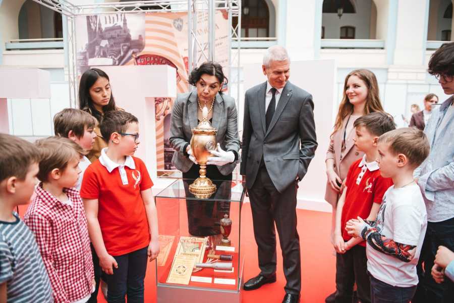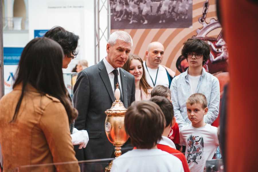 Выставка рассказывает об истории физкультурно-спортивного комплекса «Готов к труду и обороне», начиная с его возникновения и до наших дней. В экспозиции представлены советские кубки и призы по видам спорта, входящим в перечень испытаний, а также спортивный инвентарь для выполнения нормативов и занятий физкультурой. В процессе экскурсии Олег Матыцин встретился с юными шахматистами и призвал их заниматься спортом. «Надо вообще делать так, чтобы люди побольше занимались спортом. Шахматы - замечательный вид деятельности, он развивает умственные способности. Но всё-таки иногда надо выходить на свежий воздух, в зал, чтобы не сутулиться. Желаю находить время на занятия и шахматами, и футболом, и гимнастикой, и всем тем, что вам нравится», - сказал Министр спорта.