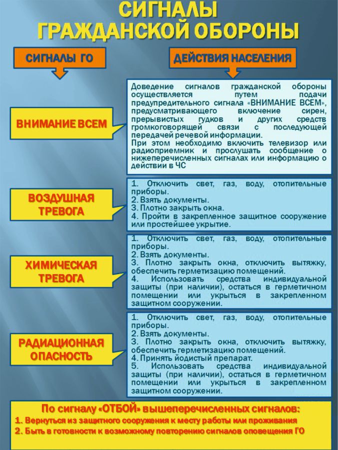 Памятки Сигналы гражданской обороны