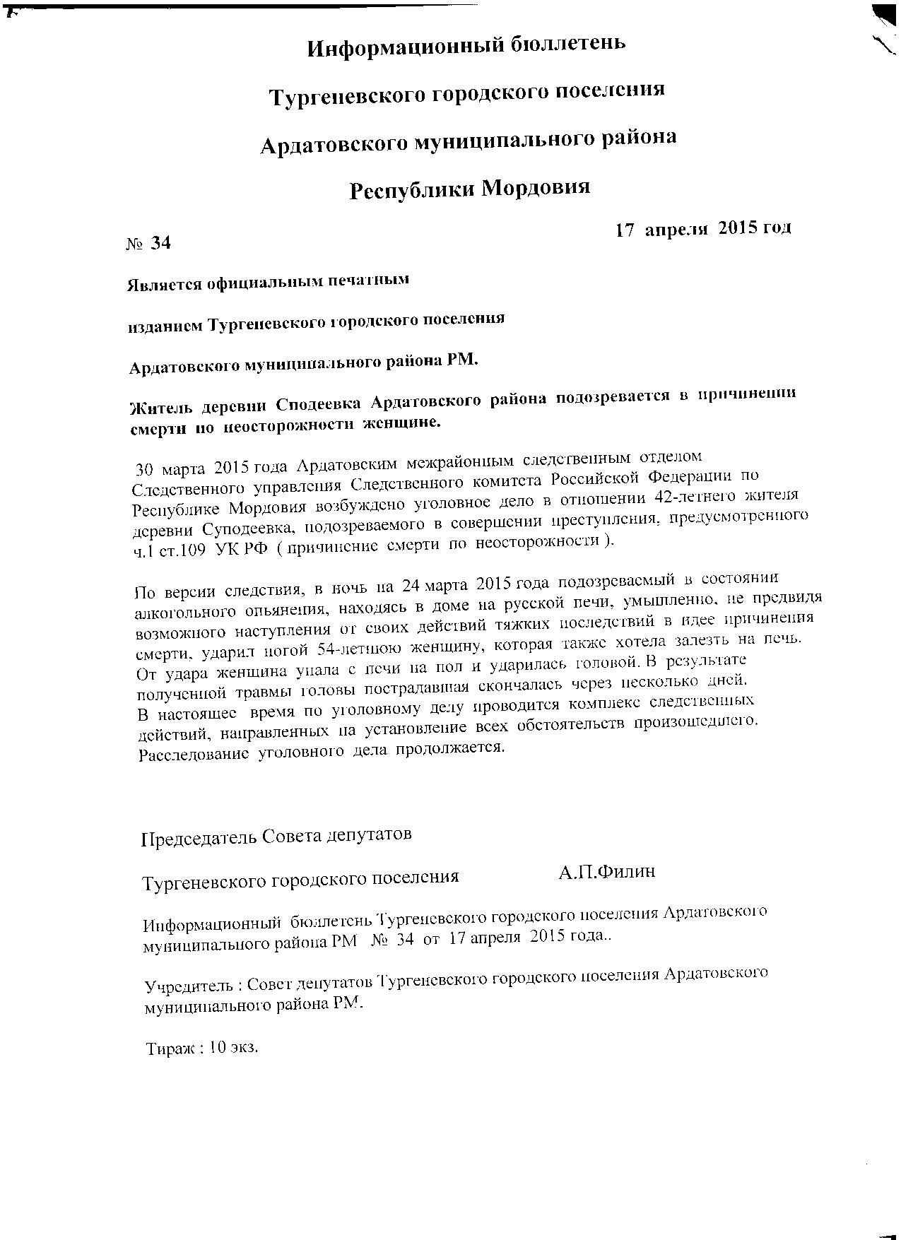 Информационный бюллетень №34 от 17 апреля