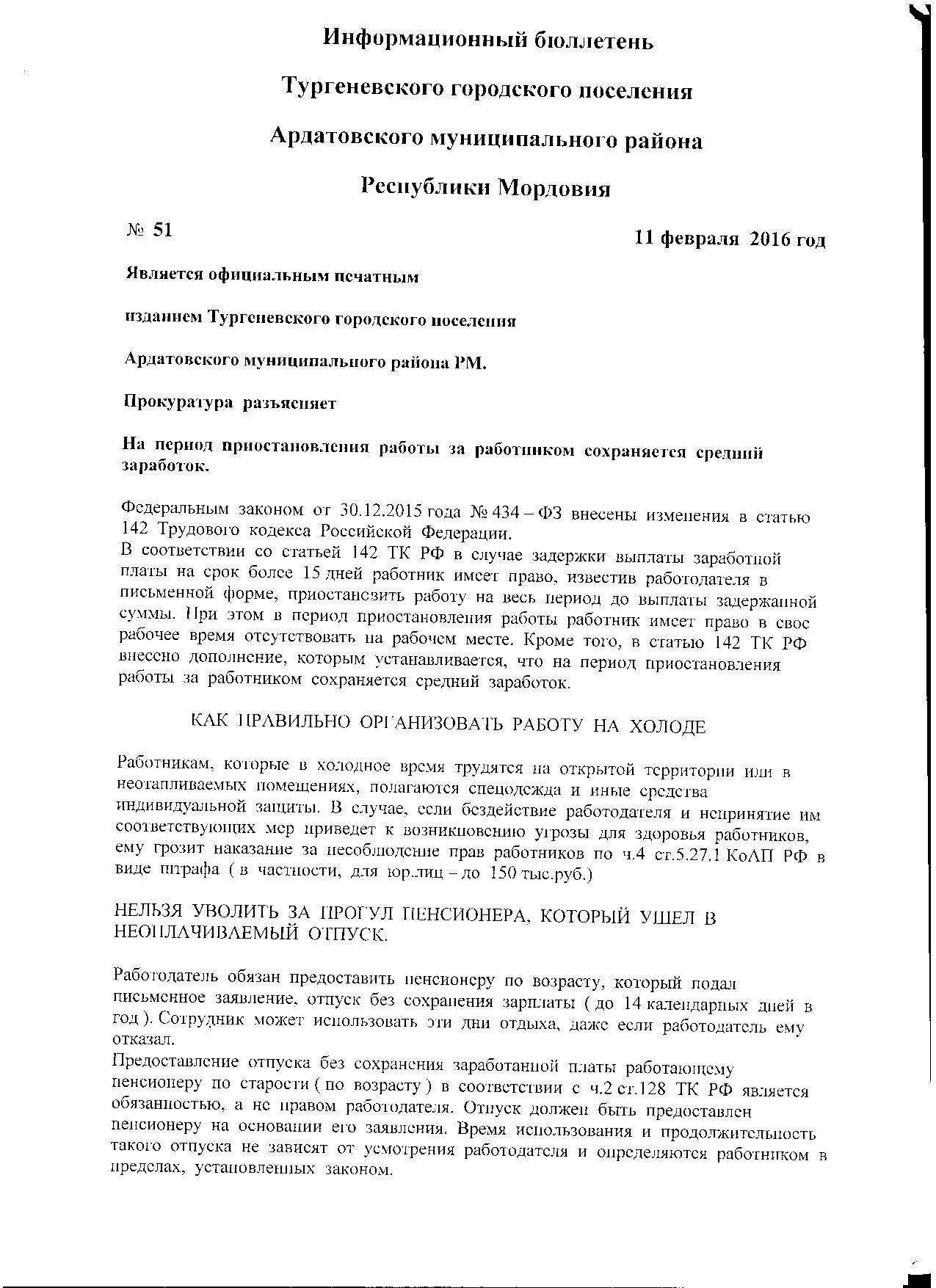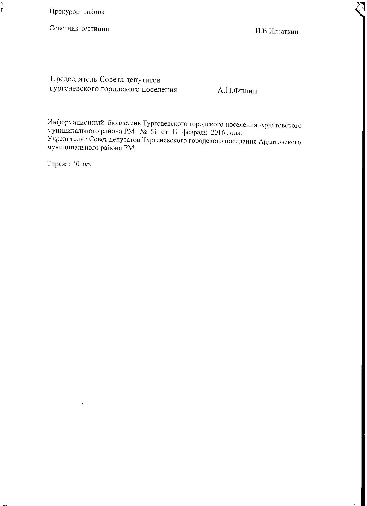 Информационный бюллетень Тургеневского городского поселения №51 от 11.02.2016г
